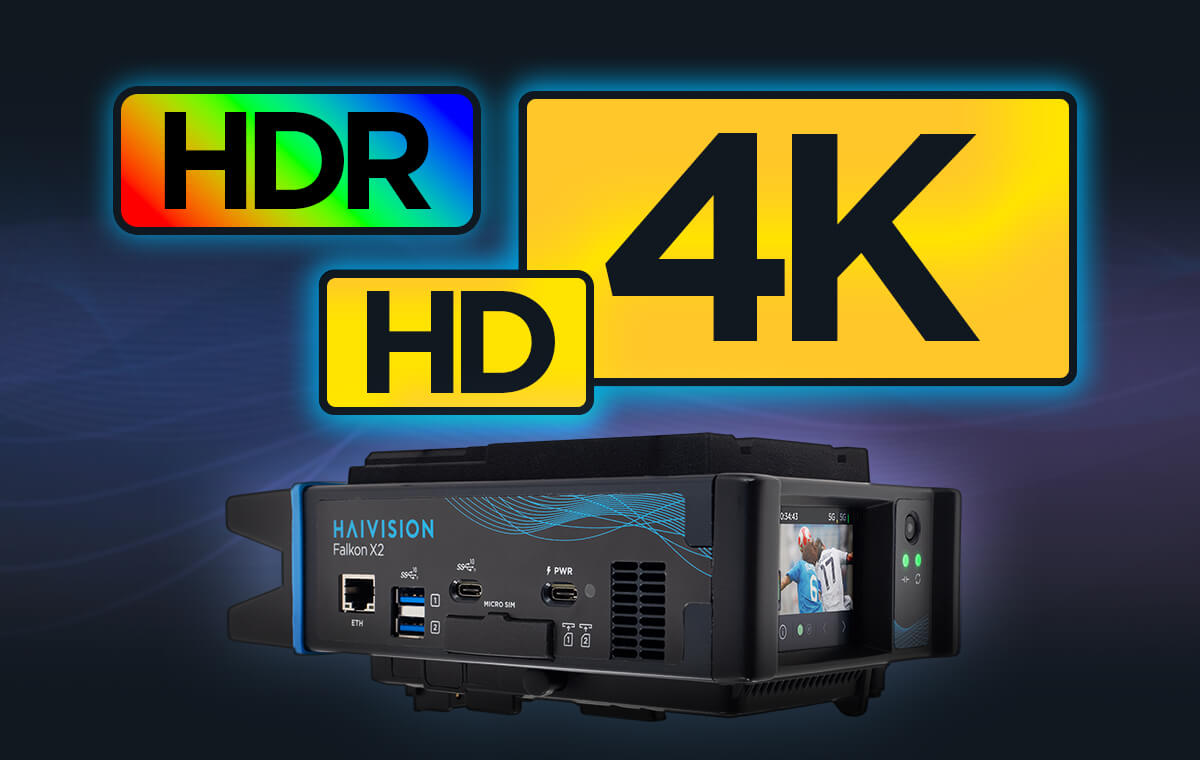 Haivision Falkon X2 кодирует и передает видео в режиме реального времени в разрешениях HD и 4K UHD. Благодаря поддержке кодирования HEVC и H.264 с профилями до 4:2:2 10-бит, Falkon X2 оптимизирует требуемое значение ширины канала, сохраняя при этом высокое качество изображения, необходимое для вещания премиум-класса.